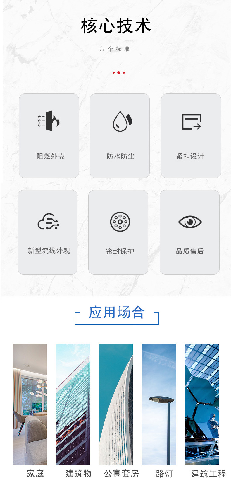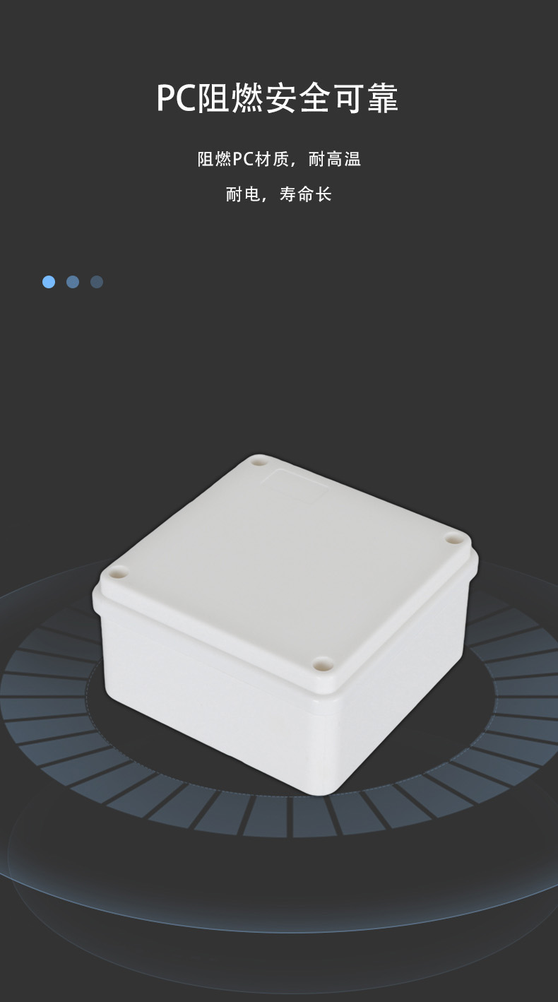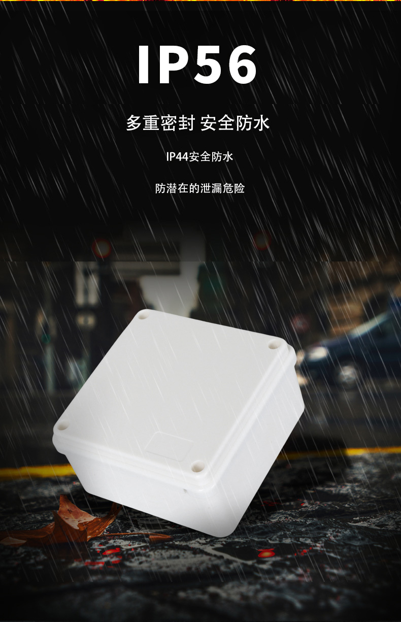 多重密封/安全防水 防水IP等級(jí) (IP44)可供選材料(常ABS)ABS阻燃、PC,合金材PC阻燃安全可靠/耐高溫/耐電/壽命長(zhǎng)每一個(gè)部分都是精心挑選的,只是為了打造一個(gè)好的產(chǎn)品