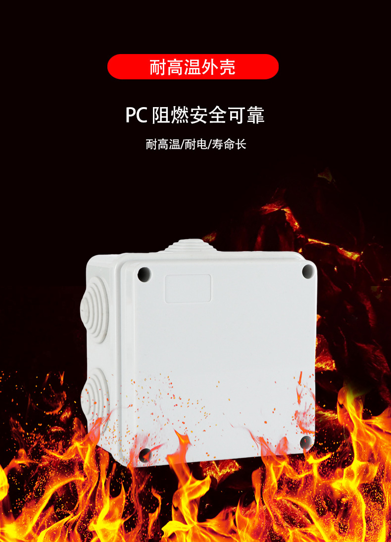 尺寸:100×100×50(mm)多重密封/安全防水 防水IP等級 (IP44)可供選材料(常ABS)ABS阻燃、PC,合金材PC阻燃安全可靠/耐高溫/耐電/壽命長每一個部分都是精心挑選的,只是為了打造一個好的產(chǎn)品