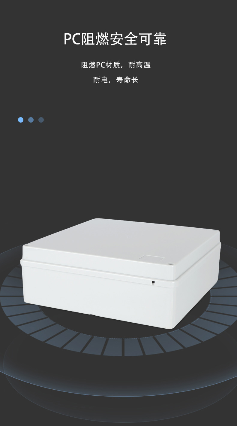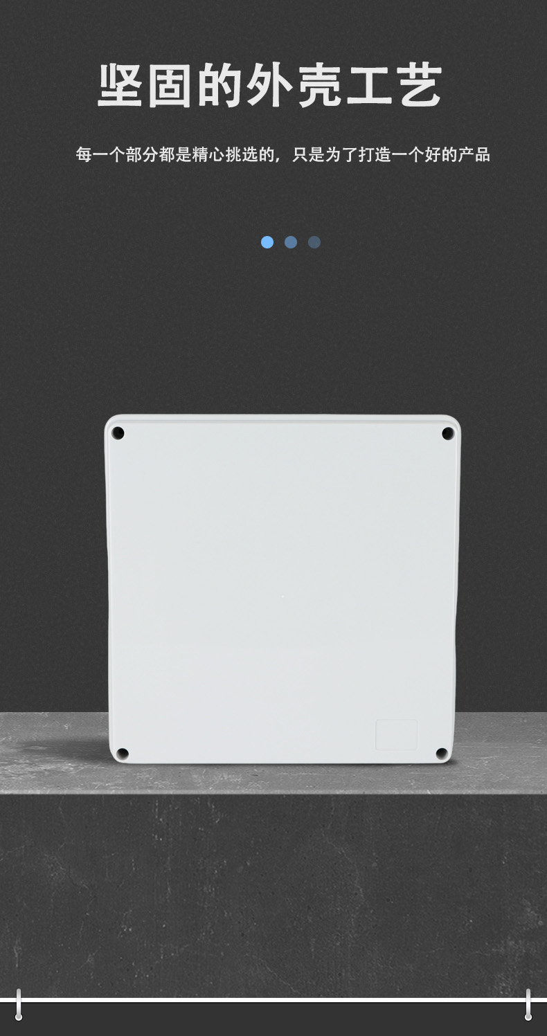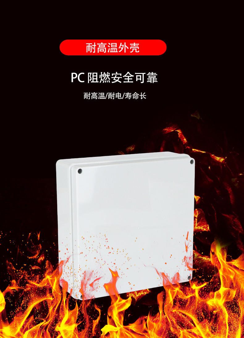 多重密封/安全防水 防水IP等級 (IP44)可供選材料(常ABS)ABS阻燃、PC,合金材PC阻燃安全可靠/耐高溫/耐電/壽命長每一個部分都是精心挑選的,只是為了打造一個好的產(chǎn)品