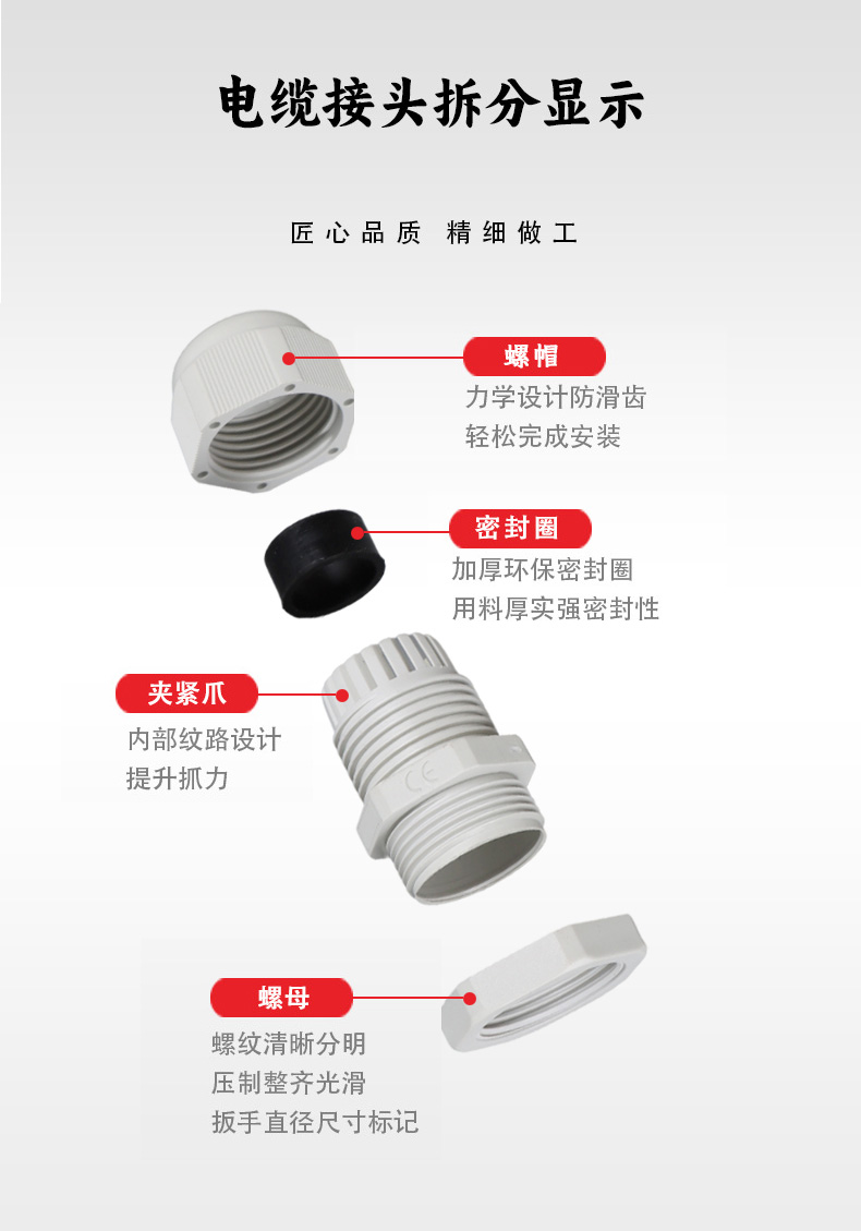 高密封性防水接頭保護電纜安全,長期使用不容易滲水