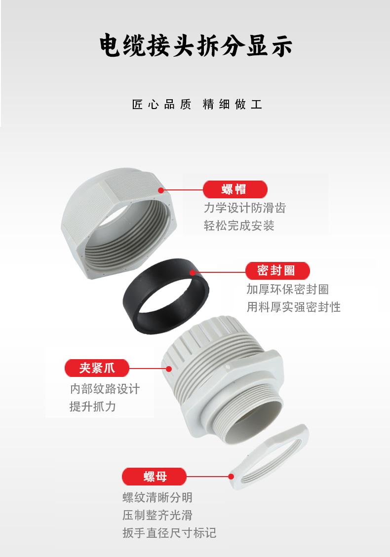 高密封性防水接頭保護(hù)電纜安全,長(zhǎng)期使用不容易滲水